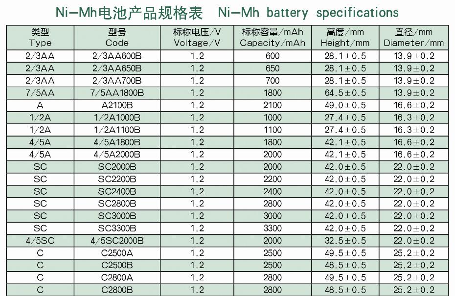 NI-MH Battery Specifications